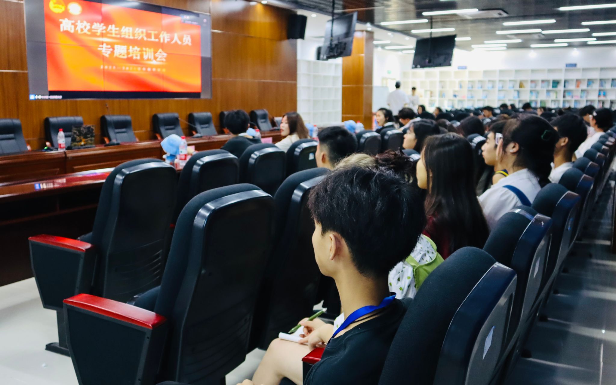 为扎实开展学习贯彻习近平新时代中国特色社会主义思想主题教育,深入学习宣传贯彻党的二十大精神,不断加强和改进新时代高校学生会工作,巩固深化学联学生会改革,持续加强学生社团建设管理,提升学生骨干的理论素养、研究能力和实践水平,2023年9月17日至18日,2023-2024学年秋季学期高校学生组织工作人员专题培训会在13-307开展。学校校院两级学生会工作人员、社团管理部负责人、学生社团主要负责人、团支部书记共计130余人参与本次培训会。