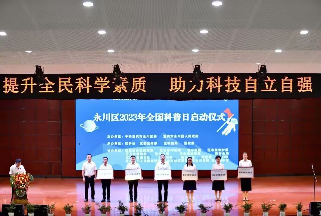 9月18日上午,2023年永川区全国科普日活动启动仪式在凤凰湖中学举行,启动仪式在简单热烈的氛围中拉开序幕。重庆市科协党组成员、副主席谭明星,重庆市科协科技服务中心党总支书记、主任郑吉安,永川区委副书记蔡焘,永川区委常委、区政府副区长、永川高新区党工委书记宋文,永川区人大常委会副主任孔萍,永川区政协副主席漆远英,学校党委委员、副校长黄爱明等出席启动仪式,区级相关部门、校相关二级单位参加。启动仪式上,黄爱明受邀为重庆电子工程职业学院职业启蒙教育基地(永川中学、凤凰湖中学、北山中学、上游小学、兴龙湖小学、红河小学)授牌。智慧健康学院赵鹏举教授向凤凰湖中学师生作了题为《智能机器人发展与青少年科技创新能力培养》的专题职业启蒙科普讲座。