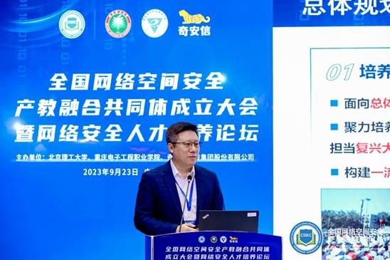 2023年9月23日,由教育部指导,重庆电子工程职业学院、奇安信集团、北京理工大学联合牵头发起的“全国网络空间安全行业产教融合共同体”(简称“共同体”)在北京正式成立,共同体首批成员单位共有326家院校、103家科研机构与企业单位。