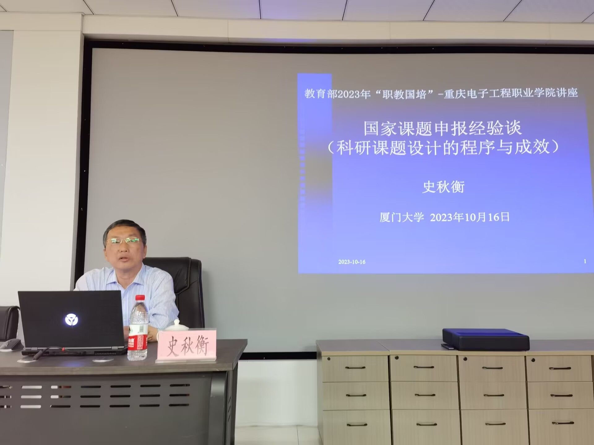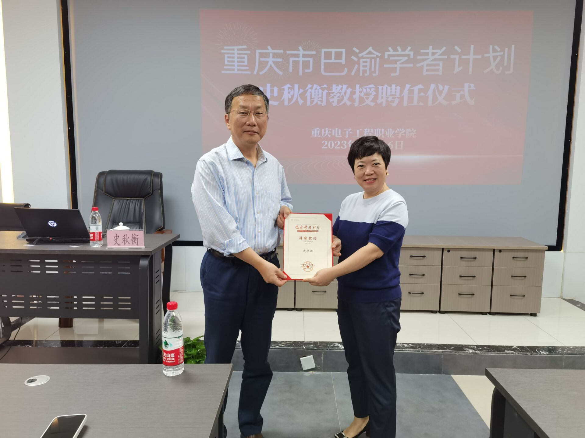 2023年10月16日下午,入选我校巴渝学者讲座教授的厦门大学博士生导师史秋衡教授为我校人工智能与大数据学院教师作了题为“国家社科项目和规划项目申报经验分享”的专题讲座。会议由武春岭主持,副校长谢义华出席了活动并为史秋衡教授颁发了“讲座教授”聘书。