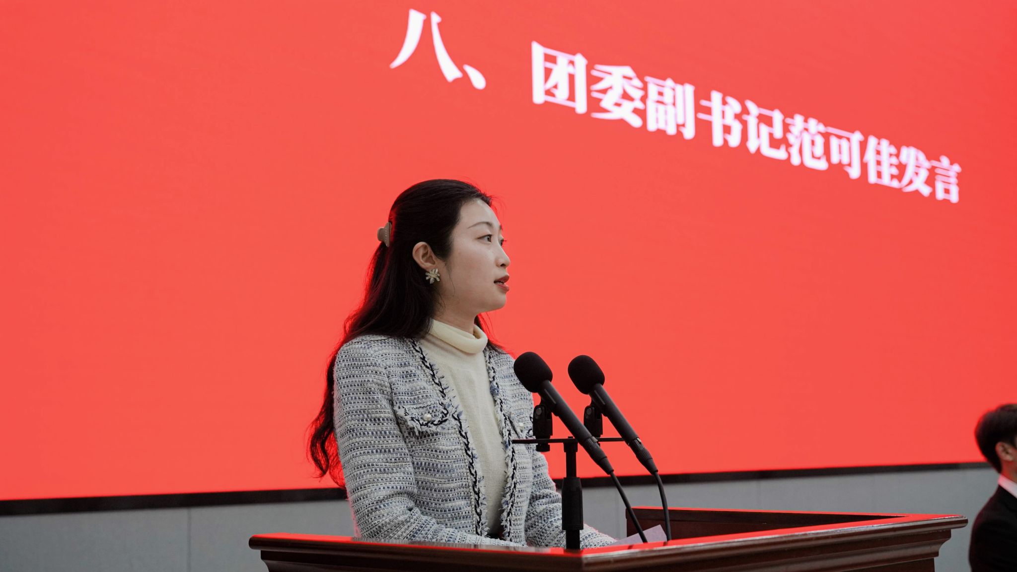 闭幕会上,校团委副书记、校学生会秘书长范可佳对各级学生会组织成员提出了三点希望,她指出,要坚定理想信念,筑牢奋斗之志;要练就过硬本领,夯实奋斗之基;要锤炼品德修养,拓展奋斗之路。最后,她表示,希望各级学生会组织和青年学生们用自己的追求和奉献为学校增光添彩,为团学事业添砖加瓦!