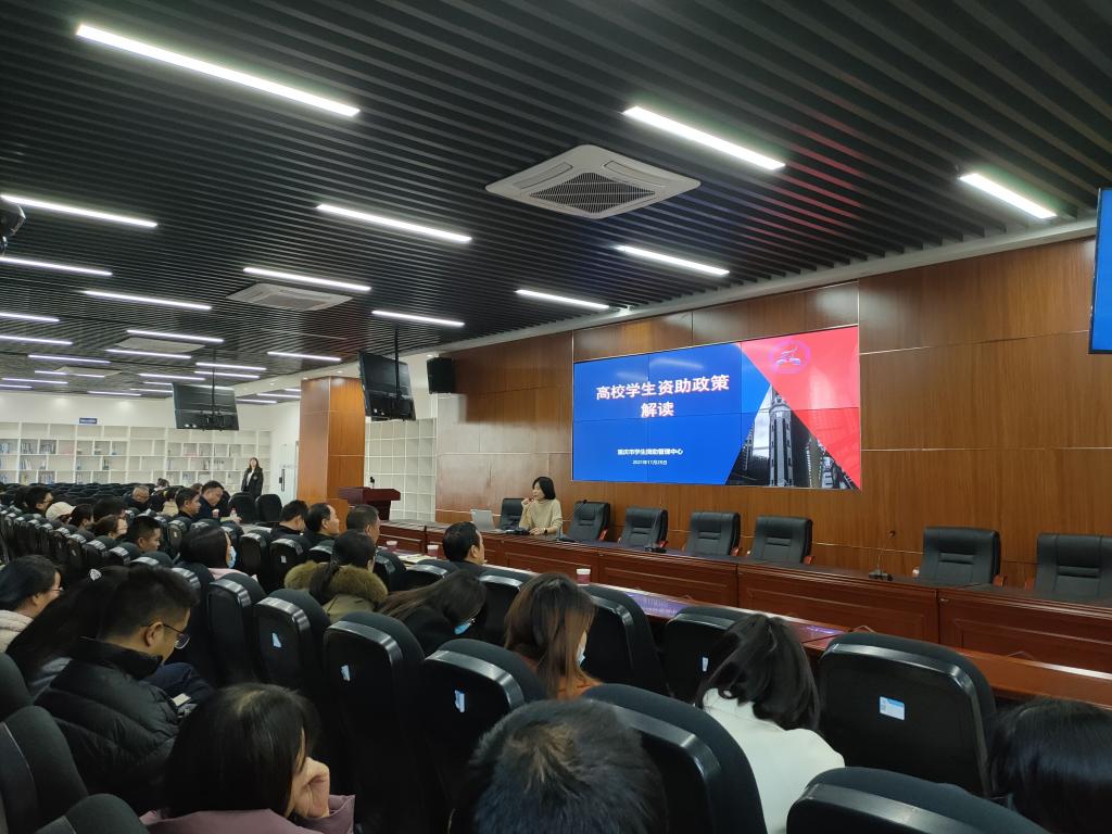 11月25日下午,我校在13-307A举办“高校学生资助政策解读”专题讲座。讲座由重庆市教委资助中心付桂玲老师主讲。党委学生工作部,二级学院党总支书记、副书记,学管科长,全体辅导员,相关职能部门工作人员聆听了讲座。讲座由学工部副部长蒋斌主持。