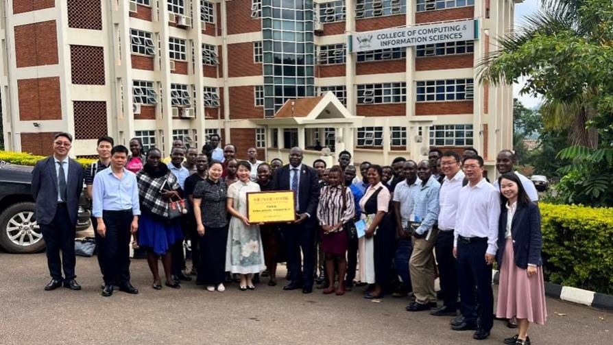 中非(乌干达)ICT学院合作项目的全体学生在麦克雷雷大学计算机与信息科学学院办公楼合影留念。