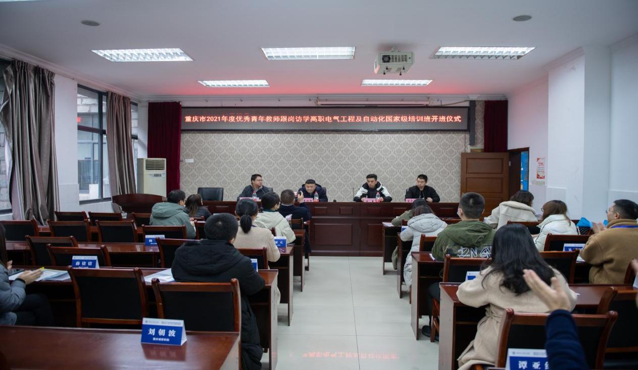 11月22日上午,重庆市2021年优秀青年教师跟岗访学高职电气工程与自动化相关专业国家级培训班在我校南校区1-101室开班。我校国培基地办主任、培训与继续教育中心主任莫绍强教授,智能制造与汽车学院副院长叶勇博士,智能制造与汽车学院社会服务科科长甘守武,以及来自我市各高职院校的20名学员参加开班仪式。