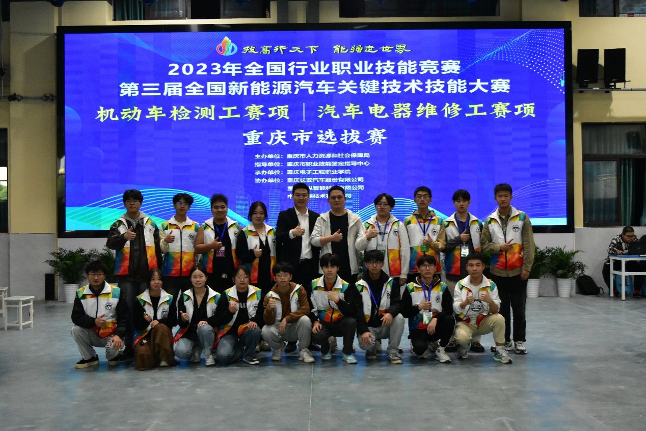 技高行天下,能强走世界。为弘扬精益求精的工匠精神,激励广大青年走技能成才报国之路,11月6日,由重庆人力资源和社会保障局主办,重庆电子工程职业学院承办,重庆长安汽车股份有限公司、重庆联纵智能科技有限公司、中汽智联技术有限公司协办的2023年全国行业职业技能竞赛第三届全国新能源汽车关键技术技能大赛重庆市选拔赛(机动车检测工赛项、汽车电器维修工赛项)在重庆电子工程职业学院智能制造与汽车学院成功举办。