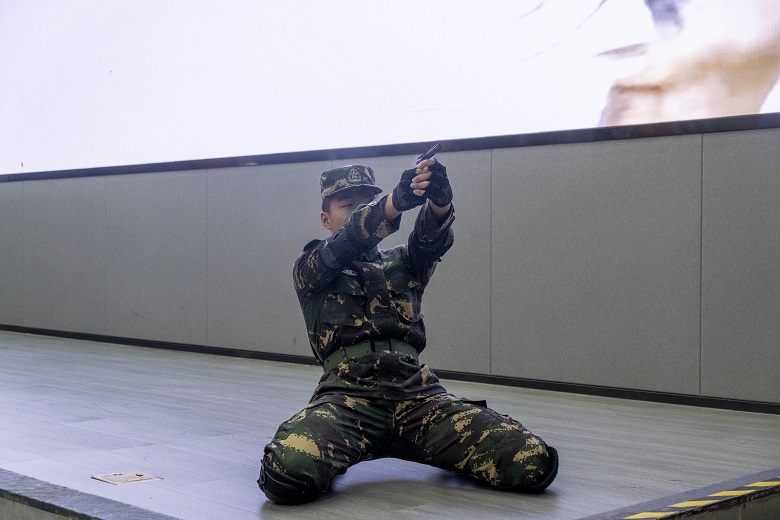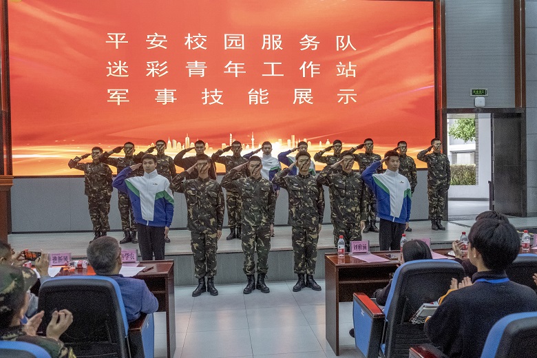 大会在雄壮的国歌声中拉开序幕。平安校园服务队、迷彩青年工作站首先带来了擒敌术、倒功、匕首操、应急棍等精彩的军事技能展示,充分展现出过硬的军事素质和坚韧不拔的优良作风。
