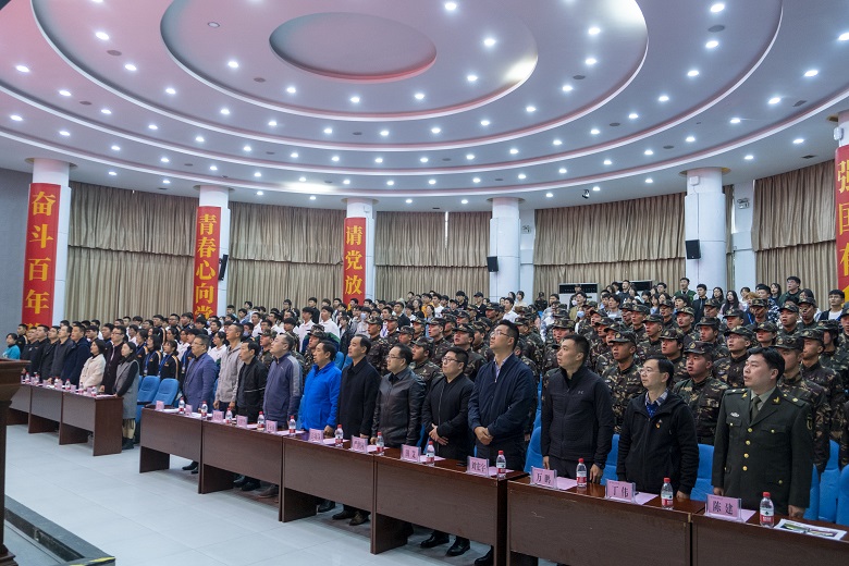 2021年11月1日下午,我校在博远厅举行第三届平安校园服务队、迷彩青年工作站换届暨表彰大会。出席本次会议的领导有副校长冉学农教授、人民武装部部长谯新风、党委学工部部长何光明、教务处处长童世华、人民武装部副部长田艾以及各二级学院书记、副书记。