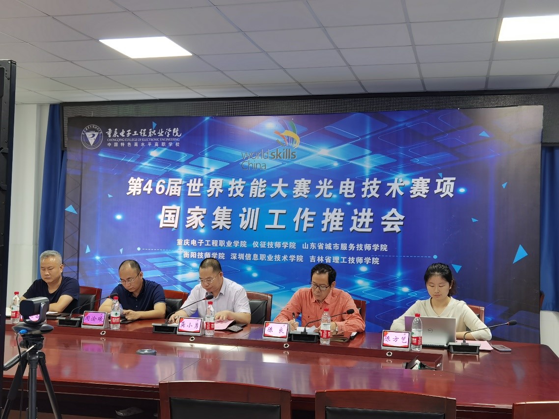 8月26日下午,第46届世界技能大赛光电技术赛项国家集训基地组织召开集训工作推进会。会议由牵头基地-重庆电子工程职业学院主持,五个副基地采用各分会场线上形式参加。参加本次会议的有重庆市人社局职建处副处长彭璐、重庆市人社局技能鉴定中心副主任王华源及光电技术赛项仪征、山东、衡阳、深圳、吉林等五个国家集训基地的负责人。我校党委副书记龚小勇、电子与物联网学院院长陈良、光电技术赛项专家组组长周渝曦、重庆集训基地教练组组长蔡运富参会。会上,龚小勇副书记介绍了学校的基本情况,并代表学校党委行政高度重视世赛备赛工作,正通过建立领导管理机构,健全工作机制,进一步做好集训保障工作。