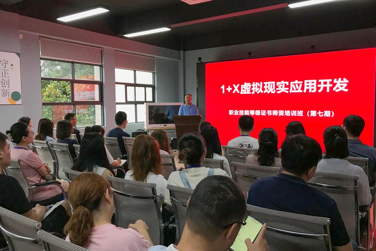 2021年7月19日上午,全国1+X虚拟现实应用开发职业技能等级证书师资培训开班仪式在我校数字媒体学院举行,仪式由我校数字媒体学院动画影视系主任罗坚主持,数字媒体学院院长刘晓东致欢迎辞。
