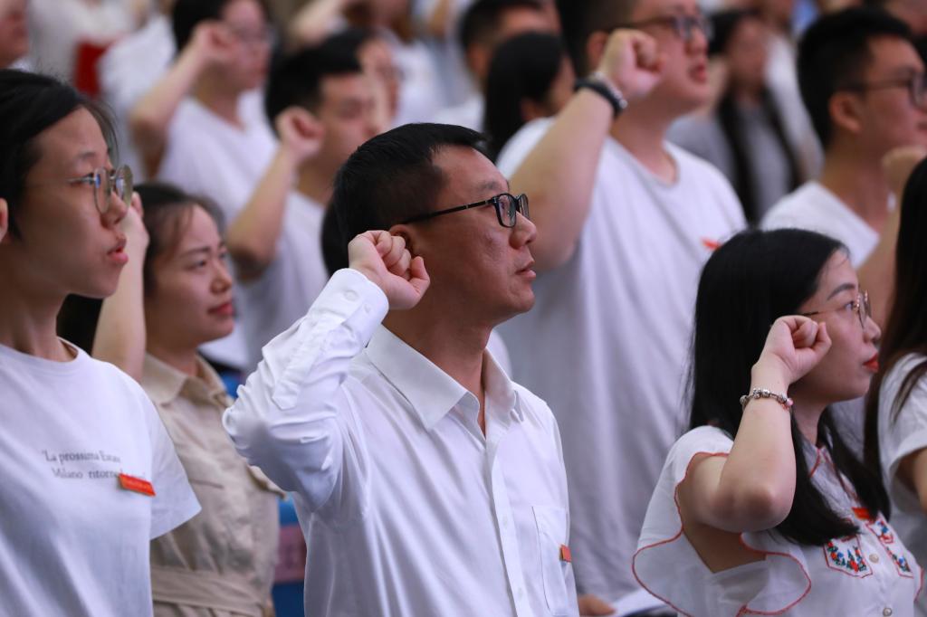 结业典礼上,聂强为学员代表颁发了结业证书,并引领新教师进行入职宣誓,新教师紧握右拳,用铿锵有力的声音作出了新时代重电人的庄严承诺。