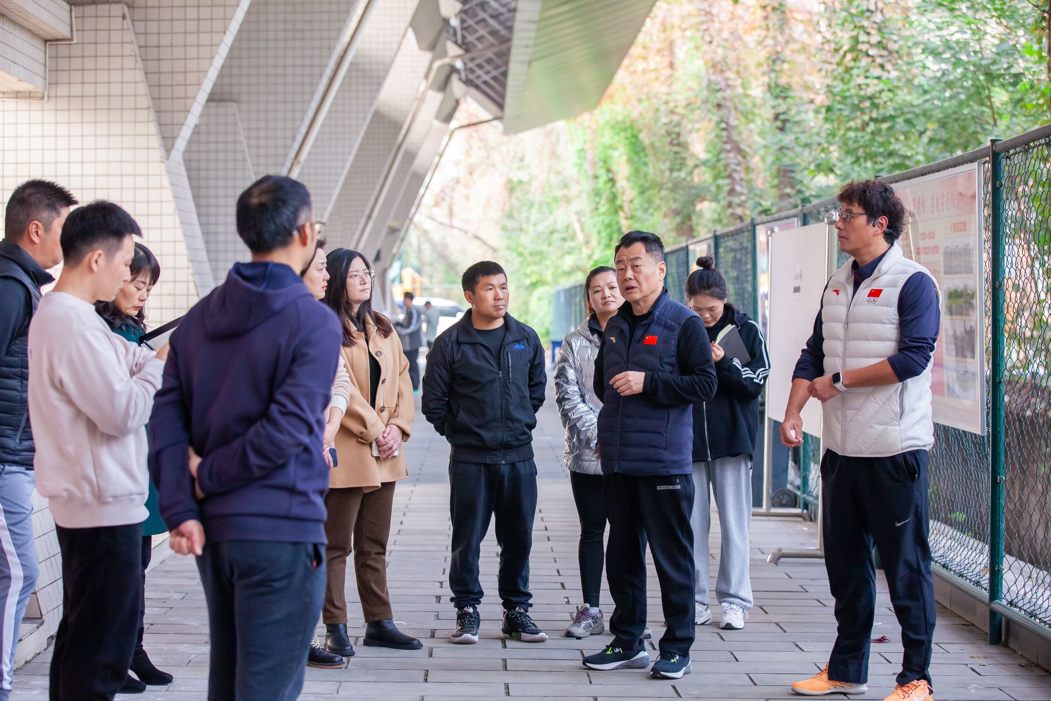 孙卫平首先来到党建阵地和体育运动队宣传文化墙,听取了体育与国防教学部党总支加强党的建设、发挥政治功能、组织功能,提升党的领导力组织力,党建引领体育运动队建设及党员示范岗建设的成效和特色做法。随后,孙卫平与体育运动队教练进行了亲切交谈,认真了解了高水平运动队训练备战、建设情况、取得成绩、发展思路等情况,听取了教练员的意见建议。