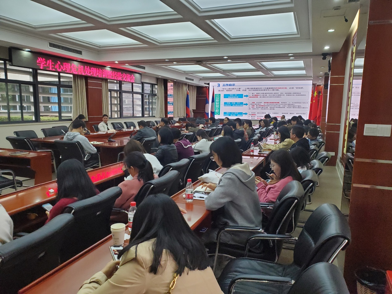 为了提升学生工作队伍识别和干预学生心理危机的能力,10月25日下午,我校在博润厅开展学生心理危机处理培训暨经验交流会。本次会议由党委学生工作部心理咨询中心组织,各二级学院党总支书记、学管科长及辅导员参加。