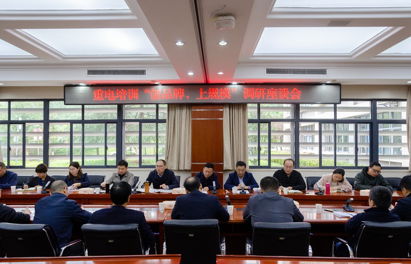2021年10月20日上午,我校重电培训“创品牌、上规模”调研座谈会在博润厅举行。副校长刘成俊、培训与继续教育中心、财务资产处、教务处、双高办、科研与社会服务处、国际交流与合作发展处、后勤保障处、人力资源处相关负责人、各二级学院院长和培训工作具体负责人参加了会议,会议由培训与继续教育中心主任莫绍强主持