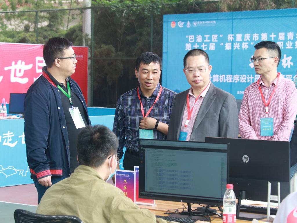 重庆电子工程职业学院党委副书记龚小勇与人工智能与大数据学院党总支书记吴焱岷亲临比赛现场检查赛事工作并为选手们加油打气。