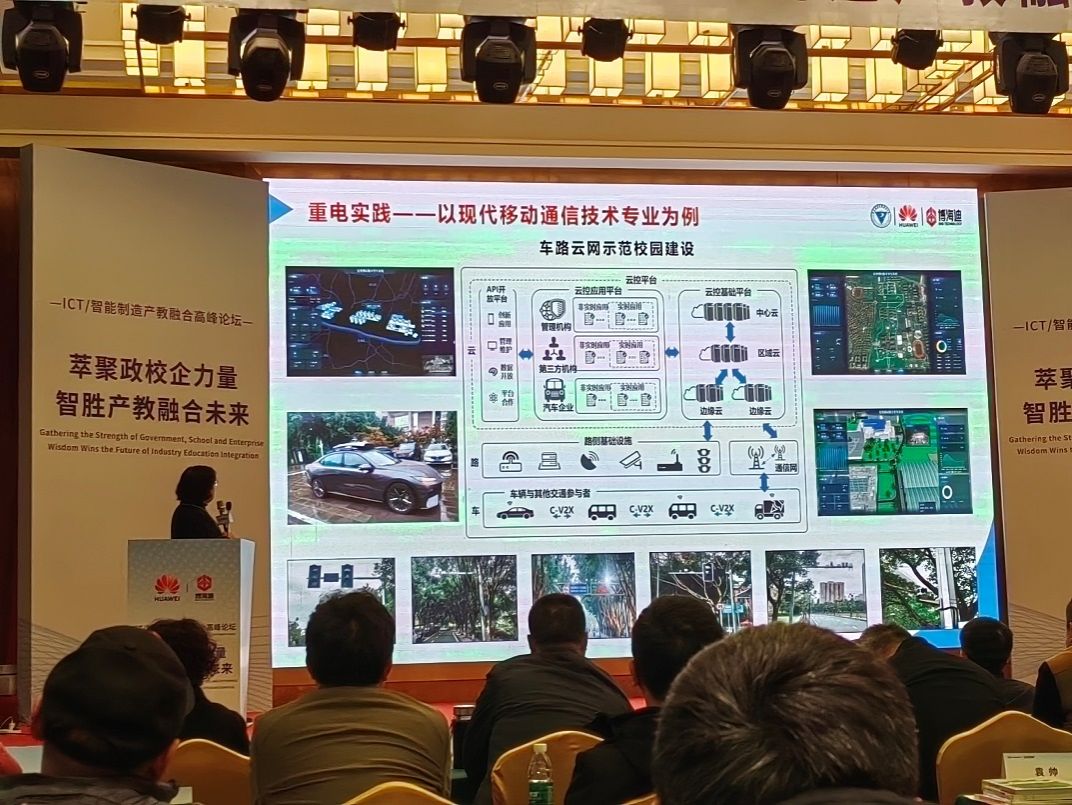 分享中,陶亚雄教授分享了智能网联跨学科复合型开云电子平台_开云(中国)的重电探索与实践。一是回顾重电与华为的合作,在课程体系重构、实训基地建设、职教师资培养、高素质开云电子平台_开云(中国)等方面成效突出。二是立足服务区域产业集群、经济社会发展,学校成立智能网联新能源汽车技术创新中心,搭建了西部首个车路云网一体化示范校园。三是重电在智能网联跨学科复合型开云电子平台_开云(中国)和技术创新的探索与实践,着重分享了随课程模块调整的室内车路协同实训系统。