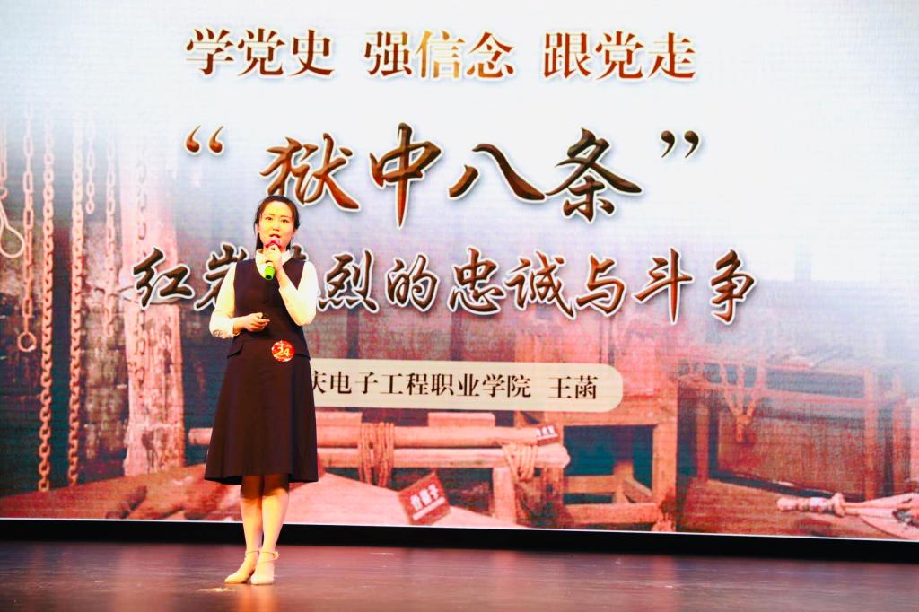 本次专场赛针对高校系统团干部综合能力素质,设计了线上党史知识测试、团组织品牌活动限时策划、微团课展示以及命题演说等四个环节比赛内容。31名优秀团干部围绕活动主题,通过既定环节进行精彩角逐。我校人工智能与大数据学院团总支书记王菡老师在此次比赛中,以《“狱中八条”,红岩英烈的忠诚与斗争》为微团课主题,命题演说自然流畅、立意鲜明,荣获本次大赛二等奖。