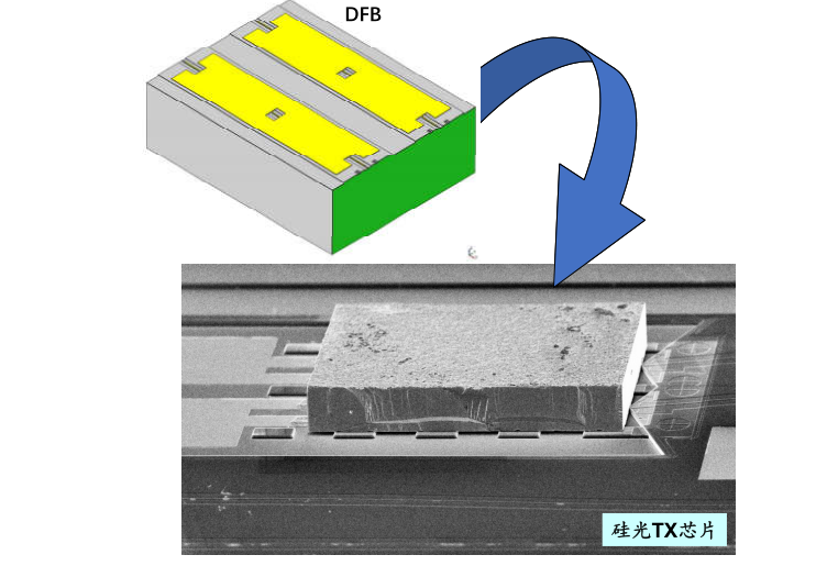 硅光子的倒装贴片技术,是将DFB激光器倒装贴片在硅发射器芯片上,与硅光子芯片完成混合集成的工艺。使用该工艺可以控制产品良率,并可以及时的做片上失效分析,降低产品开发的时间和经济成本。近期的倒装贴片技术开发成果,保证光波导在XYZ三轴方向上的精确度可以达到次微米级的要求。这个精度可以确保光耦合的效率在量产时都能在50%以上,不仅维持整体发射器芯片低功耗的要求,更可减少散热所带来的不稳定性。