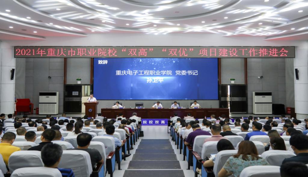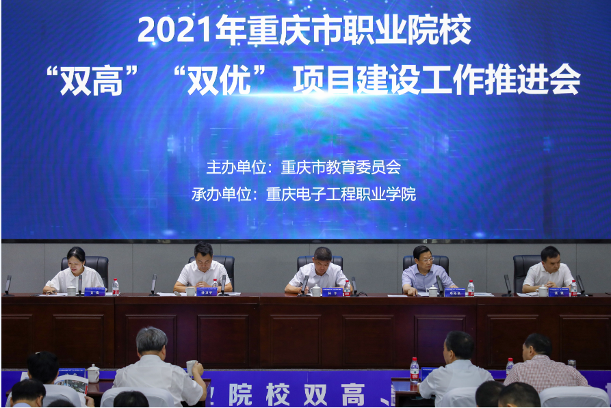 9月26, 由重庆市教委主办,我校承办的2021年重庆市职业院校“双高”“双优”项目建设工作推进会在学校博远厅举行。会议旨在深入贯彻习近平总书记对职业教育工作的重要指示和全国职业教育大会精神,推动我市职业教育高标准、高质量、高水平发展。教育部职业教育与成人教育司副司长林宇,市委教育工委委员、市教委副主任邓沁泉出席会议并讲话。市教委职成教处处长吴岚,市教委职成教处副处长徐柏泉,北京师范大学职业教育与成人教育研究所所长赵志群,中国高等教育学会职教分会会长、浙江金融职业学院党委书记周建松,重庆科技学院党委副书记干勤,全市高职院校领导,中职学校领导,区县教委领导,我校党委书记孙卫平,校长聂强等校领导,中层干部及一线教师参加次会议。会议由市教委职成教处处长吴岚和市教委职成教处副处长徐柏泉主持。