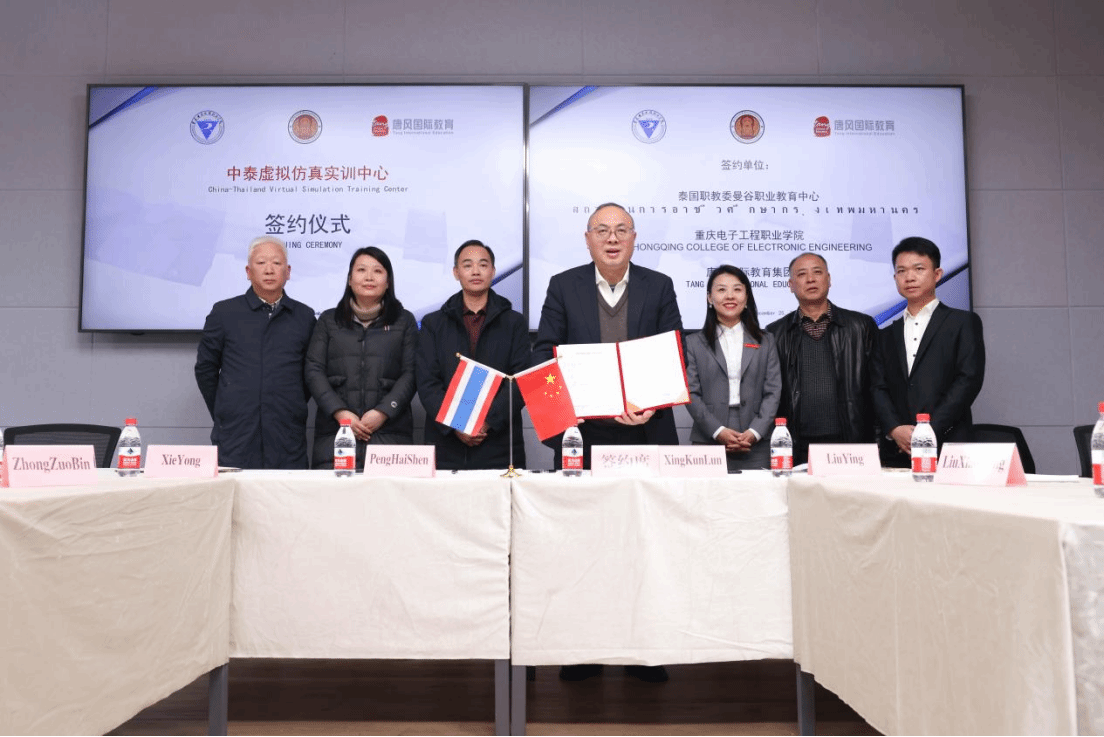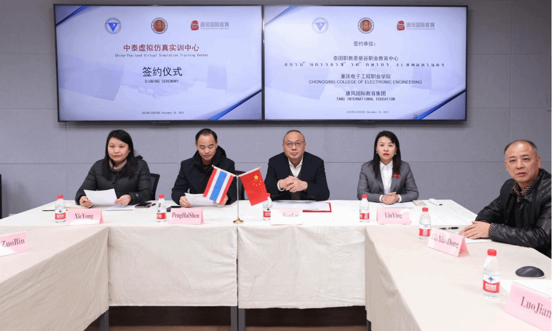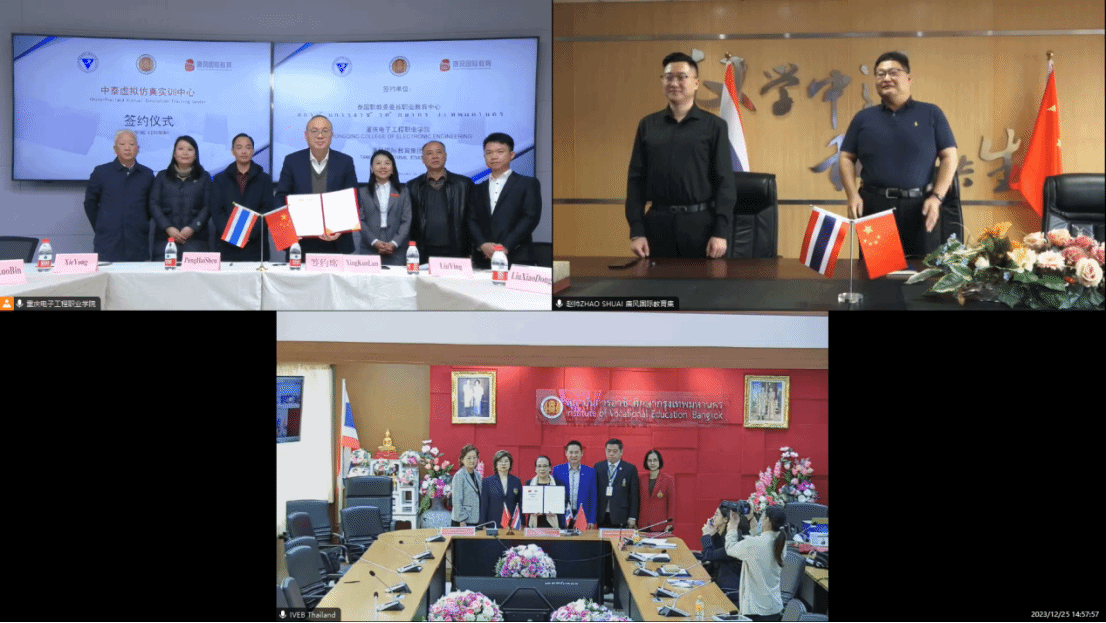 2023年12月25日,重庆电子工程职业学院和泰国曼谷职业教育中心在线上举行“中泰虚拟仿真中心”合作签约仪式。