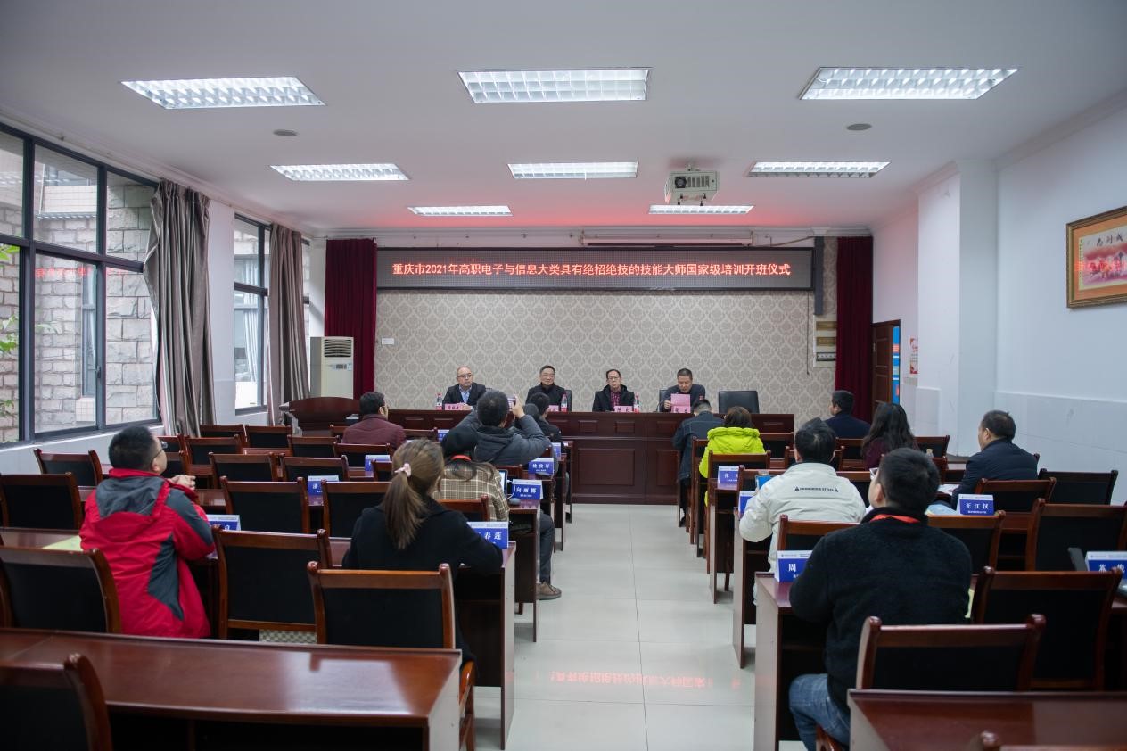 12月6日下午,重庆市2021年高职电子与信息大类具有绝招绝技的技能大师国家级培训班在我校南校区1-101室开班。重庆电子工程职业学院副校长刘成俊,我校电子与物联网学院院长陈良,培训与继续教育中心副主任李晓斌,以及来自重庆市高职院校的20名学员参加开班仪式。