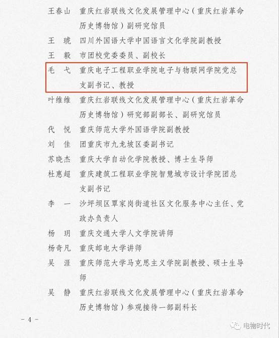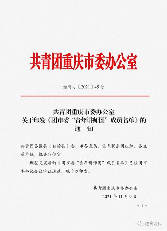 电子与物联网学党总支副书记毛弋入选共青团重庆市委“青年讲师团”(党史、新中国史、改革开放史、社会主义发展史、团史小组)。团市委“青年讲师团”,为在全市青少年中迅速掀起学习宣传贯彻党的十九届六中全会精神的热潮,引导全市青少年准确把握、深刻理解、全面贯彻全会精神。根据党中央部署要求,按照市委、团中央工作安排,结合重庆共青团工作实际,在全市青少年中开展学习贯彻党的十九届六中全会精神宣讲工作所成立。