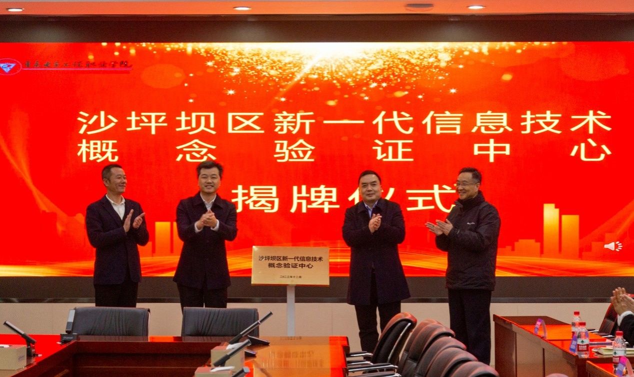 2023年12月29日,重庆沙坪坝区新一代信息技术概念验证中心揭牌仪式在我校博润厅举行。沙坪坝区新一代信息技术概念验证中心是科技成果转移转化的专业平台,是重庆市首个以“概念验证”为主题的科技成果验证机构。市科技局二级巡视员杨军,沙坪坝区政府副区长凌健,学校校长聂强,副校长刘成俊等领导出席。我校科研平台(团队)、首批进入中心的相关人员约40余人参加会议。