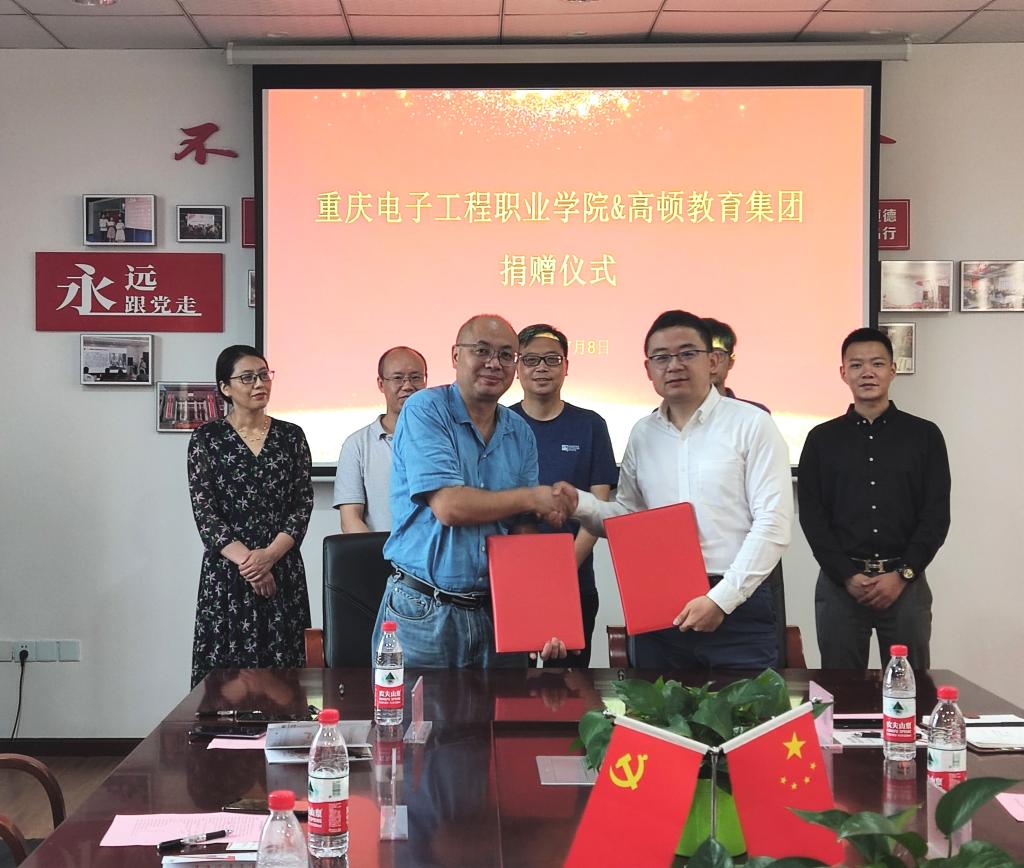 随后,幸昆仑副校长代表重庆电子工程职业学院接受高顿教育集团的捐赠并签署了捐赠协议,汪启航与李昌鑫代表双方签署了校企合作协议。