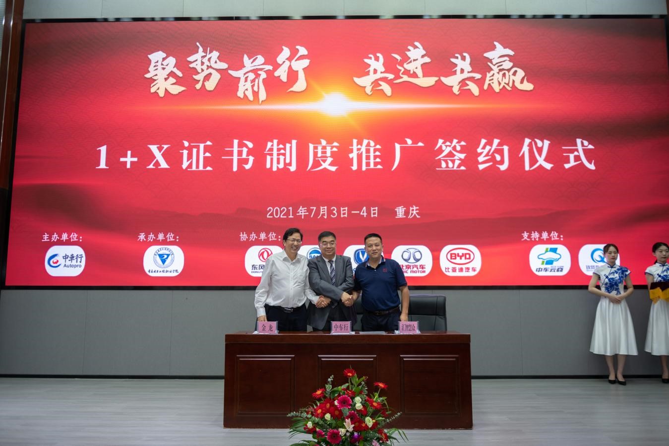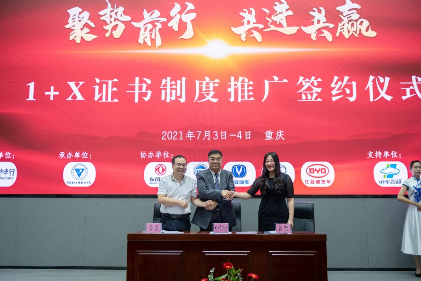7月3日上午,北京中车行高新技术有限公司与东风集团有限公司、上海汽车集团股份有限公司、重庆长安汽车股份有限公司、北京汽车蓝谷营销服务有限公司和厦门金龙联合汽车工业有限公司等五家国内龙头汽车制造企业分别举行了1+X证书制度推广签约仪式,全面贯彻落实全国职业教育大会精神,力图深化加快产教融合进程,推进校企合作力度,促进1+X证书制度试点工作在企业方向推广,实现复合型技术技能人才高质量就业。