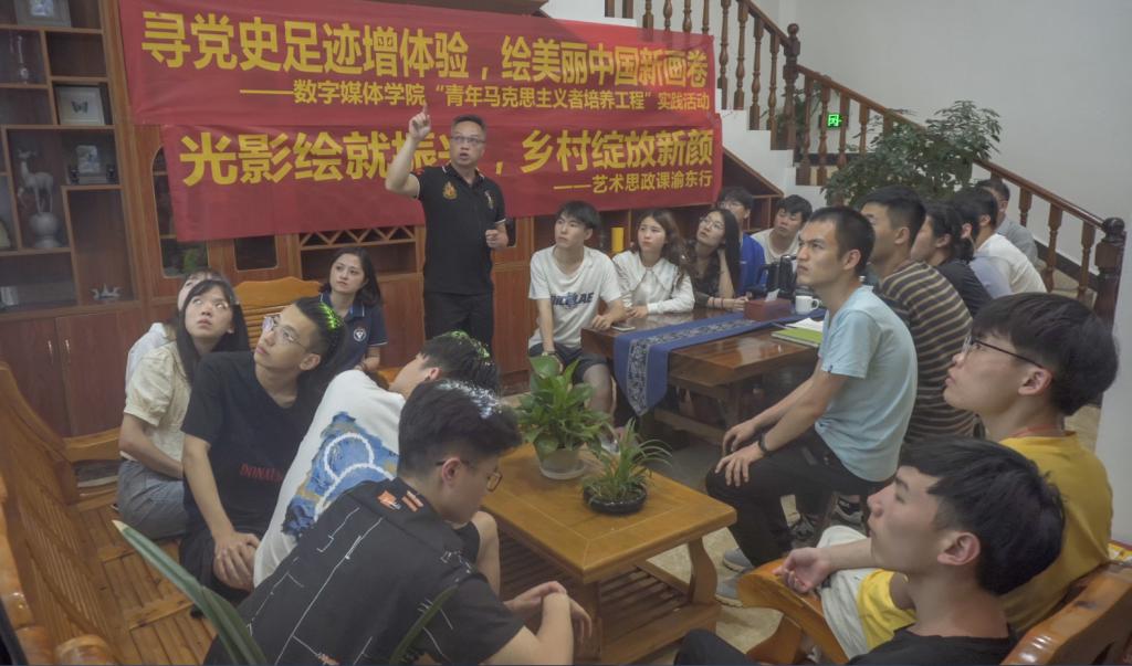 本次主题实践活动以“学党史、强信念、跟党走”为目标任务,以艺术思政融课为主要形式,由重庆电子工程职业学院数字媒体学院专职团干、专业教师、专职辅导员和马克思主义学院形势与政策教研室思政课教师组成的师资团,开展集中理论学习和分散实践教学,主要了解当地风土人情、红色故事、历史文化、改革发展等。