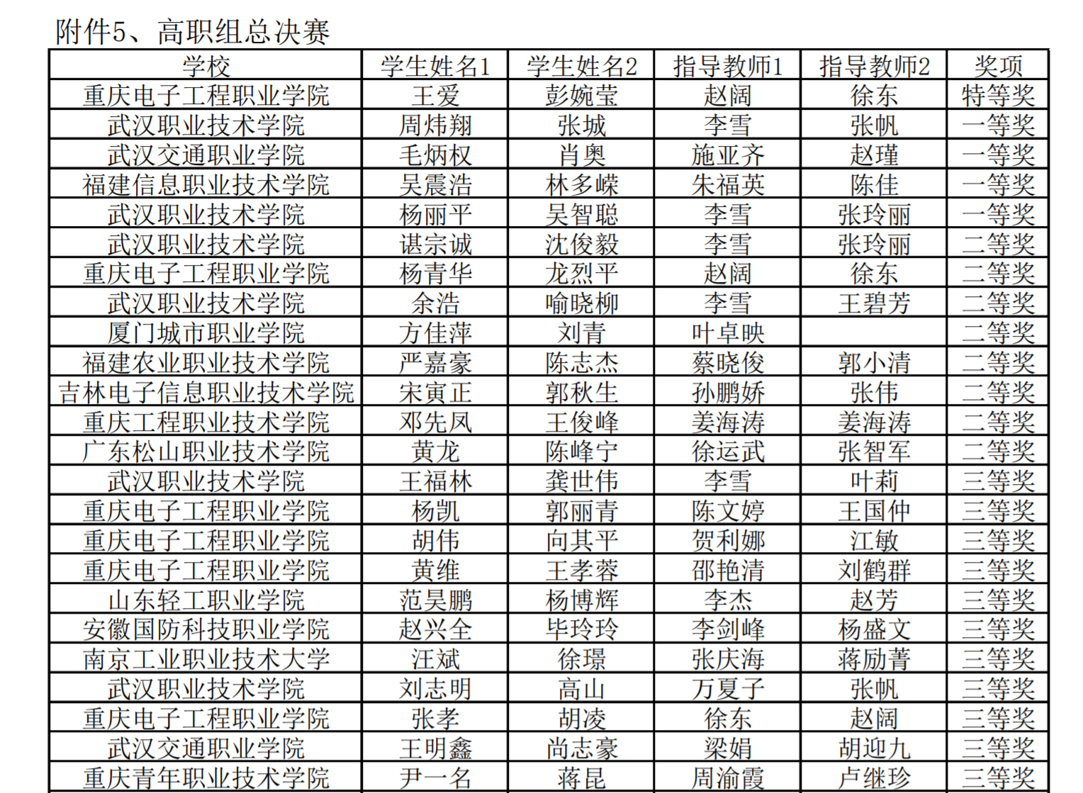 图2:高职组总决赛获奖名