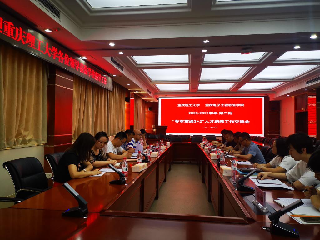 2021年6月23日下午,重庆理工大学—重庆电子工程职业学院2020-2021学年第二学期“专本贯通3+2”开云电子平台_开云(中国)工作交流会在我校博润厅顺利召开。重庆理工大学应用技术学院教务部主任魏光明、学办主任谢博以及本科班导师和辅导员代表,重庆电子工程职业学院教务处副处长赖先志、“专本贯通3+2”负责人黄晓君,人工智能与大数据学院党总支书记吴焱岷、教务科科长刘忠利、学管科科长白锐、2018级“专本贯通3+2”班学业导师陈学平、秦毅,班级辅导员(班主任)老师刘凤梅、刘思伶参加会议。