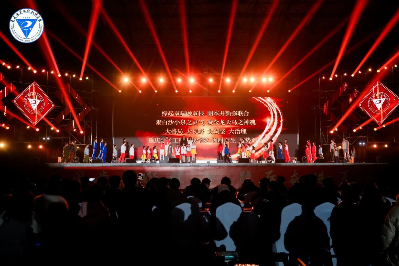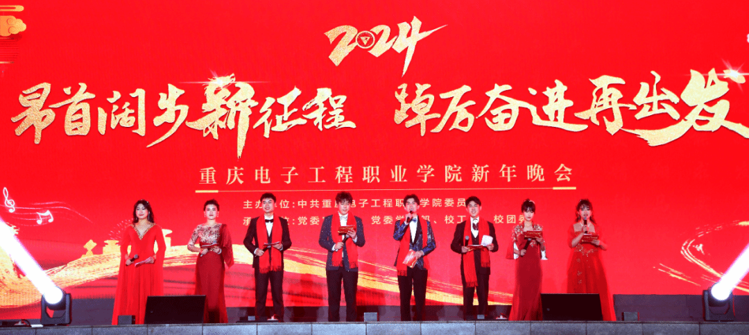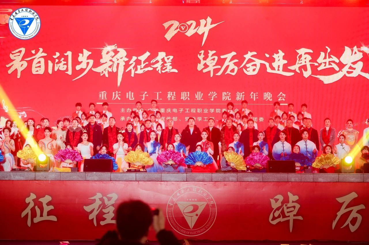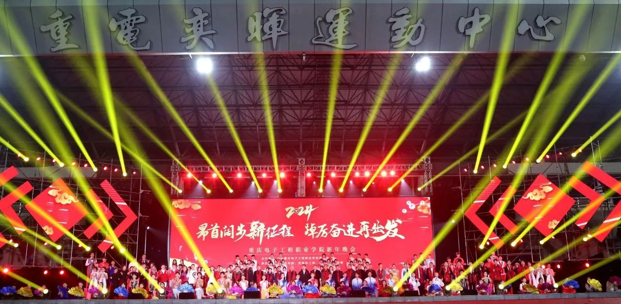 12月28日晚,重庆电子工程职业学院“昂首阔步新征程 踔厉奋进再出发”2024年新年晚会在奕晖运动中心举行。学校党委书记孙卫平,党委副书记、校长聂强,原校长何大同,原校领导毛信东、凌成树、王平,党委副书记龚小勇,党委委员、副校长谢义华、冉学农、黄爱明、刘洪光,党委委员、纪委书记谢涛,党委委员、党委组织部部长疏勤,党委委员、党委宣传部部长徐继燕莅临晚会现场。学校职能部门教师、二级学院师生、离退休同志、校友代表参加晚会。
