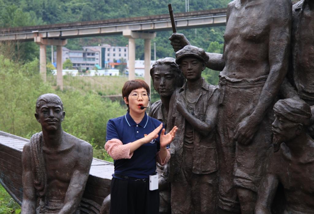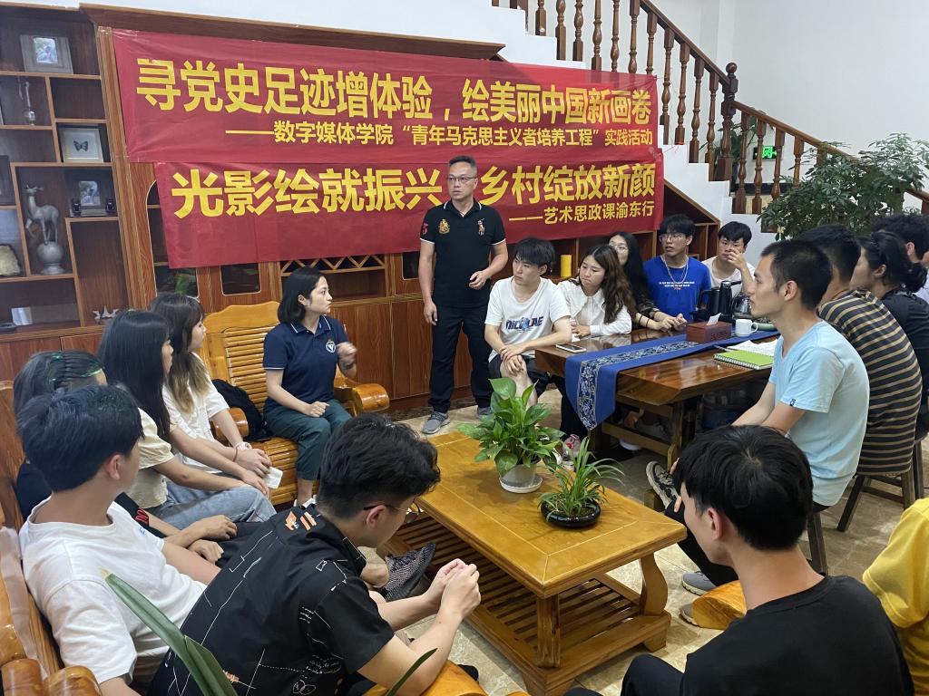 在酉阳,周叶露老师以“是唐街,是宋城,是爷爷奶奶的家”开启“情景画”创新教学,带着同学们赏析著名画家吴冠中先生笔下的龚滩画卷,用脚步亲自丈量改革开放以来古镇的变化;在乌江船上,周叶露和余秀平老师讲述了酉阳中共早期无产阶级革命家赵世炎舍身救国的英勇事迹,程媛老师为同学还原了1949年11月解放龚滩的革命斗争;在龚滩美术馆和吴冠中纪念馆,杜鹤淦和罗淞译老师从思政课角度和专业课角度为同学们讲解了如何将时代主题融入文艺创作中;在乌江画廊边,吴艾佳老师带着同学理解两岸的绿水青山和金山银山的辩证统一,并带着大家高唱《唱支山歌给党听》,将思政融课推向了高潮。
