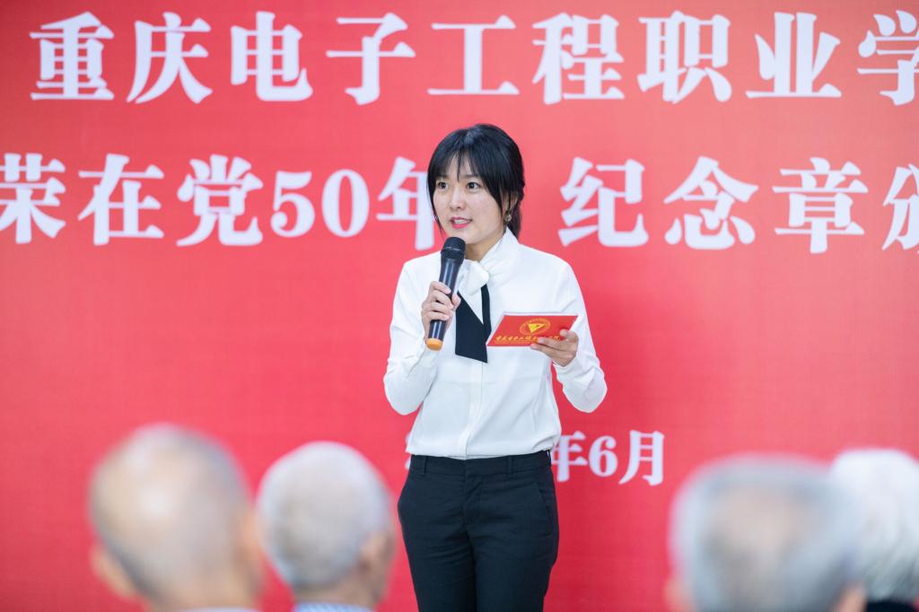 陈丽书记宣读了重庆电子工程职业学院“光荣在党50年”纪念章获得者名单。