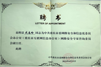 6月18日,我校人工智能与大数据学院武春岭院长接到了中共重庆市委网络安全和信息化委员会办公室颁发的网络安全专家咨询委员会副主任聘书。武春岭表示,将进一步发挥专家智库的重要作用,切实提高依法决策、科学决策、民主决策水平,进一步推动我市网信事业高质量发展。