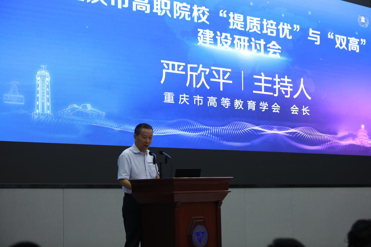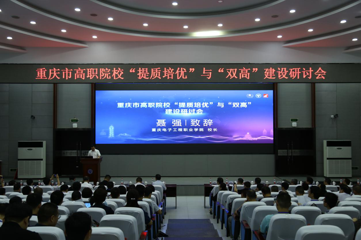 2021年6月18日上午9:00,由重庆市高等教育学会主办、我校承办、超星集团协办的重庆市高职院校“提质培优”与“双高”建设研讨会在我校召开。重庆市教委职成教处副处长徐柏泉、教育部职成司院校发展处李俊雅、校长聂强、副书记龚小勇、浙江机电职业技术学院副院长丁明军、超星职业教育研究院钱会博副院长、重庆市教委职成处相关同志、以及重庆市40余所高职学校的领导和教师、我校领导与教师代表200余人参加了本次研讨会,会议由重庆市高等教育学会会长严欣平主持。
