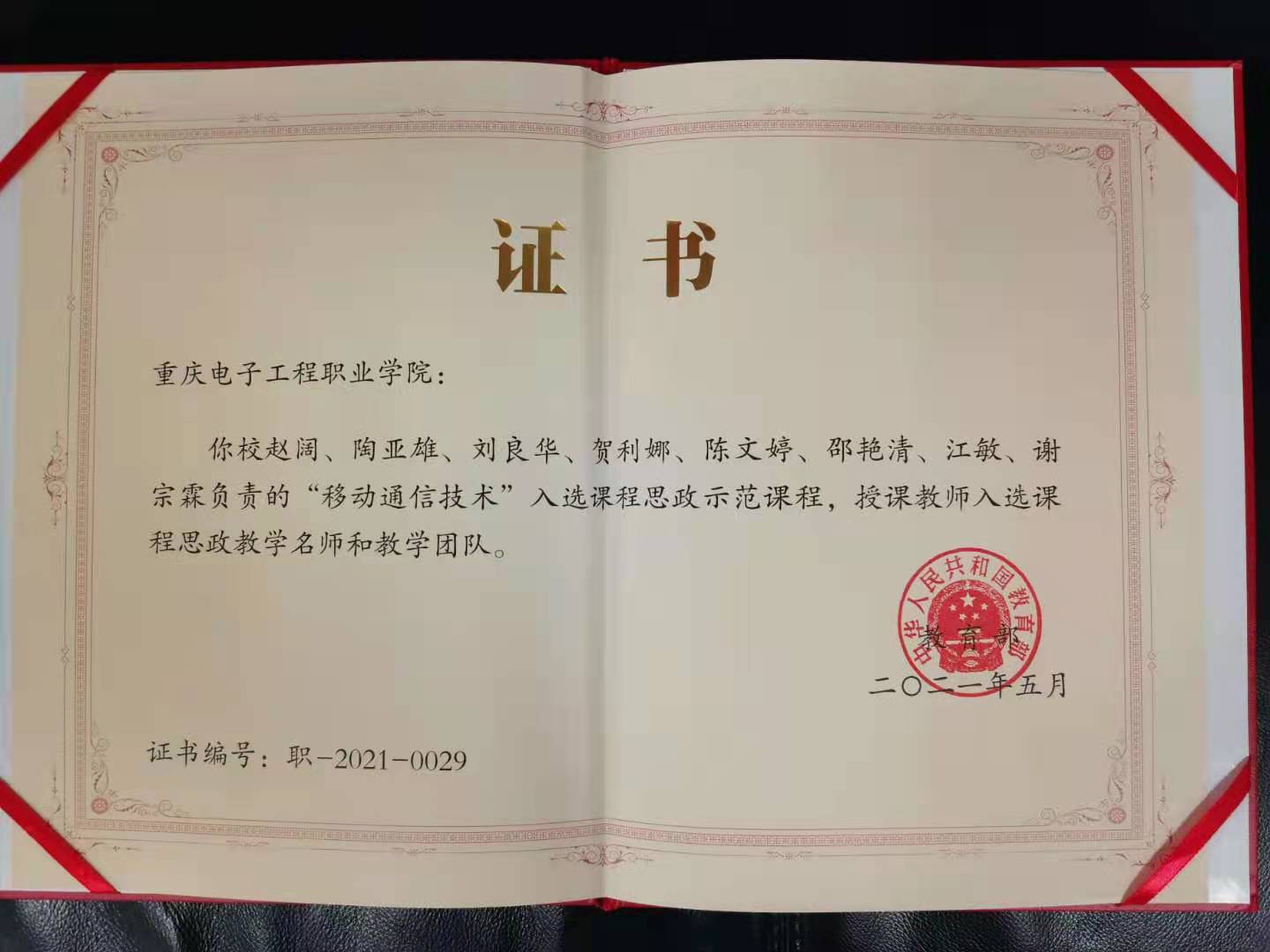 根据教育部发布的《关于公布课程思政示范项目名单的通知》(教高函〔2021〕7号)文件,我校组织申报的《传感器技术与应用》《移动通信技术》共2个项目全部立项为教育部课程思政示范项目,入选示范课程相应授课教师、团队自动认定为课程思政教学名师或教学团队。
