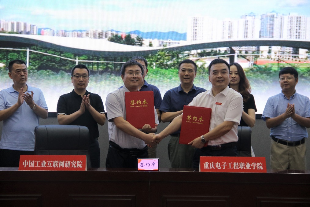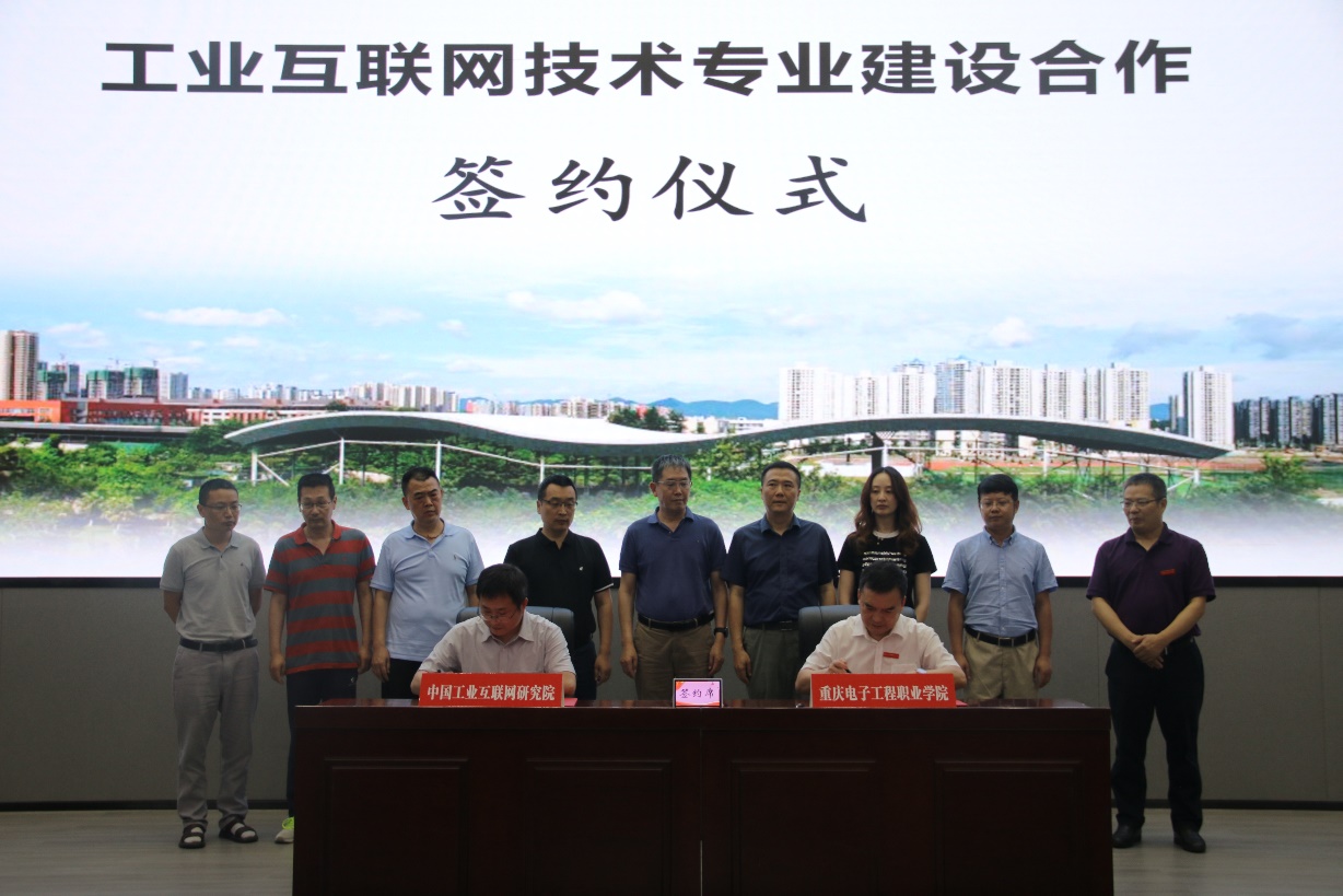 重庆电子工程职业学院与中国工业互联网研究院共建工业互联网技术专业合作协议签约仪式在此次启动仪式上举行。在重庆市经济和信息化委员会智能化处领导和工业互联网技术领域多位专家的见证下,中国工业互联网研究院标准化所培训技术负责人张玉良和我校聂强校长共同签署合作协议。
