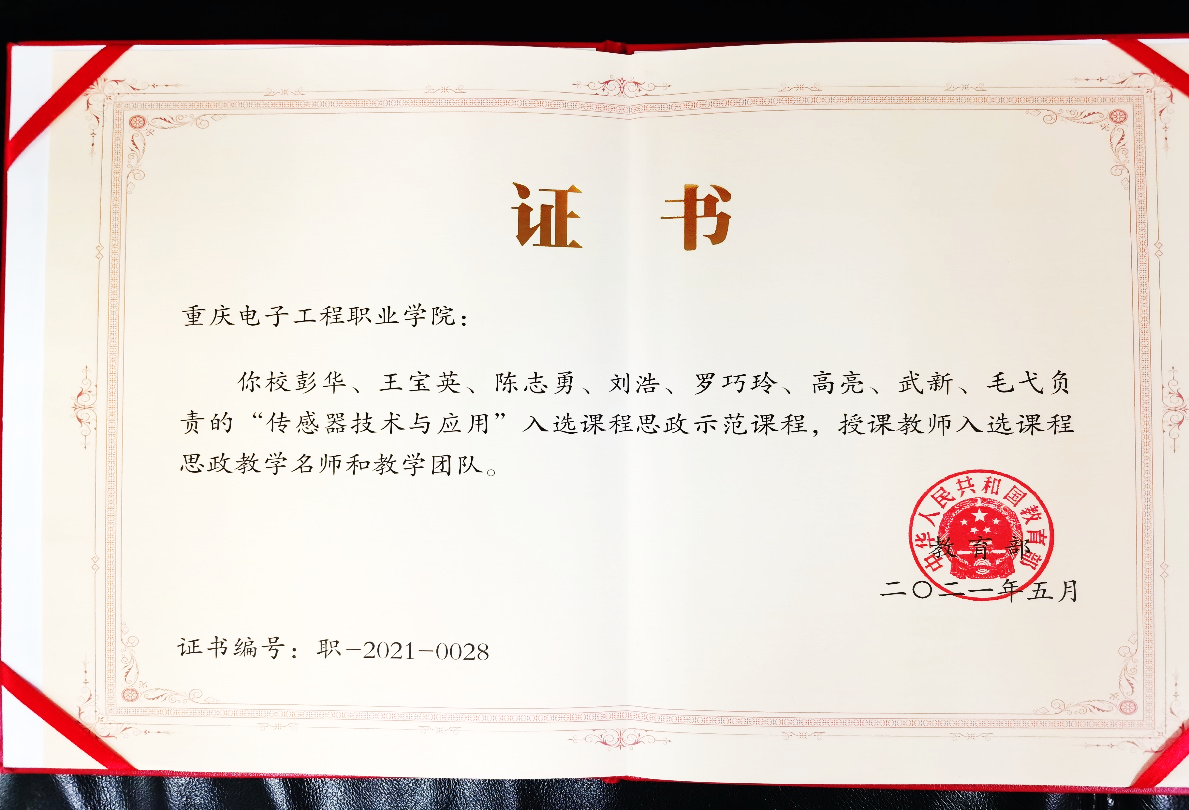 6月15日,电子与物联网学院《传感器技术与应用》课程入选课程思政示范课程,授课教师入选课程思政教学名师和教学团队。该荣誉称号是教育部首次对课程思政课程、教师和团队进行的认定。