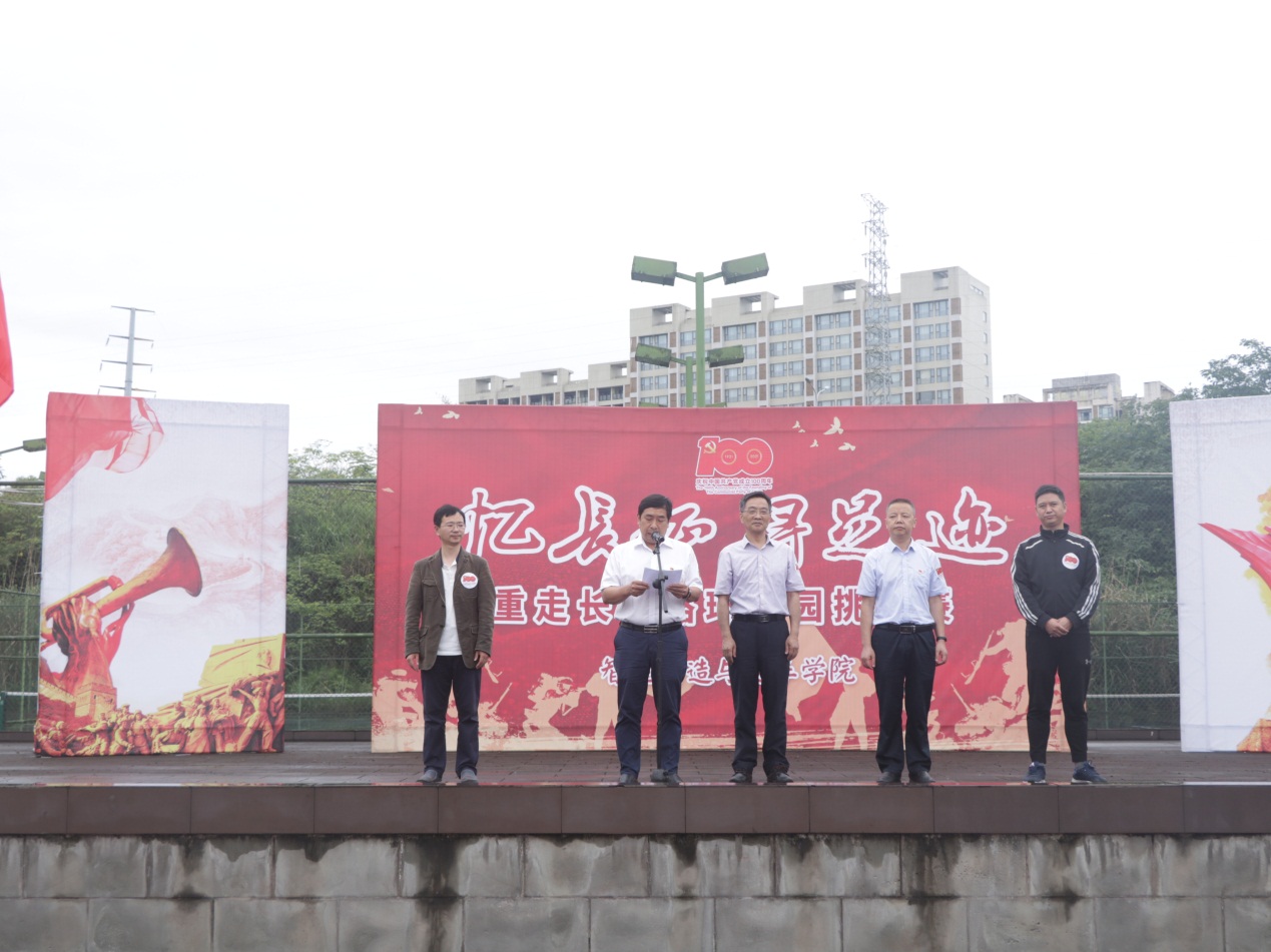 为了缅怀革命先烈,大力弘扬长征精神,传承红色基因,2021年6月3日,智能制造与汽车学院举办“忆长征·寻足迹”重走长征路环校园跑挑战赛,以红军长征历史为背景,通过模拟长征路,重温红军长征艰苦卓绝的光荣历史,缅怀革命先辈的光辉事迹。学校副校长刘成俊、党委委员组织统战部部长刘洪光、党委学生工作部副部长江兵,学院党总支书记罗永前、副书记丁伟,学院团总支、学管科所有老师以及学生代表参与了本次活动的开幕式。