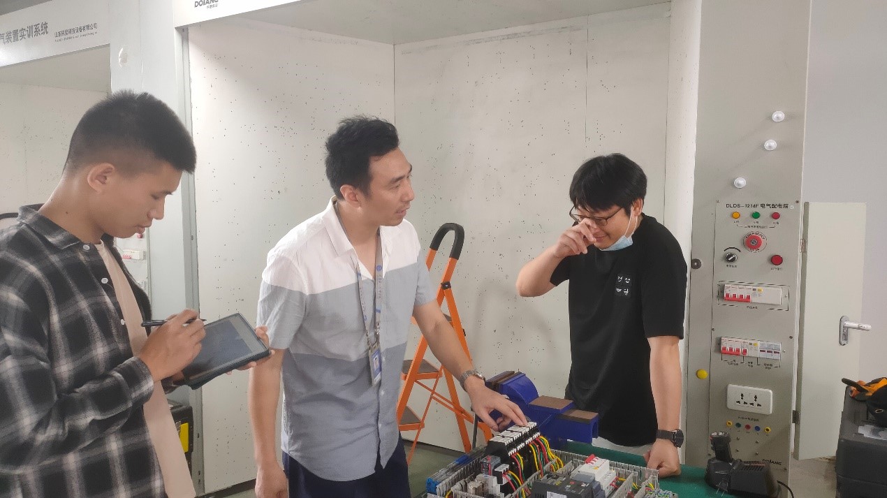 6月1日,我校世界技能大赛光电技术赛项基地教练、电子与物联网学院专任教师杨汉生、高亮及选手李小松一行3人到电气装置项目重庆市集训基地参观交流。参观交流受到重庆五一技师学院校企合作部杨朝彬部长、电气工程学院代志良院长、技能大赛办公室周智强老师、电气装置赛项杨帆教练的热情接待。
