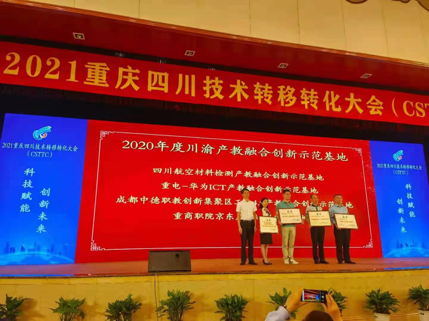 在2021年5月27日举办的“2021重庆四川技术转移转化大会”上,我校通信工程学院和华为及其ICT产业链上企业共同参与建设的“重电-华为ICT产教融合实训基地”荣获“川渝产教融合创新示范基地”,移动通信技术专业带头人王国仲代表基地接受授牌。同时,我校通工与通运党支部书记张慧敏教授团队的“3D指静脉身份识别仪”项目在会上获得“2020年度川渝产学研创新成果一等奖”。