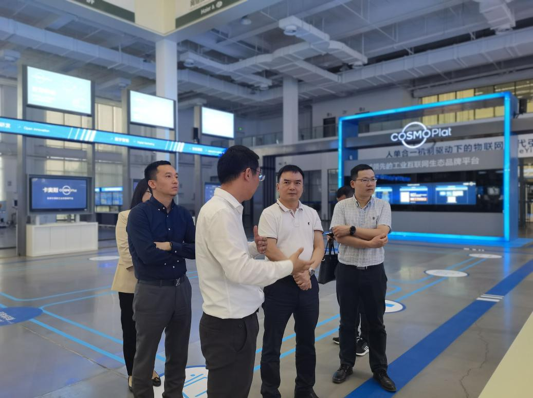 海尔工业智能研究院位于青岛西海岸新区,是家电行业第一个工业智能研究院。在任总经理的带领下,聂强校长一行参观了卡奥斯COSMO Plat展示区,这是海尔智研院打造的全球首家引入用户全流程参与体验的工业互联网平台。在公司技术人员的指导下,体验了最新平台应用终端,并与公司领导展开亲切交流。