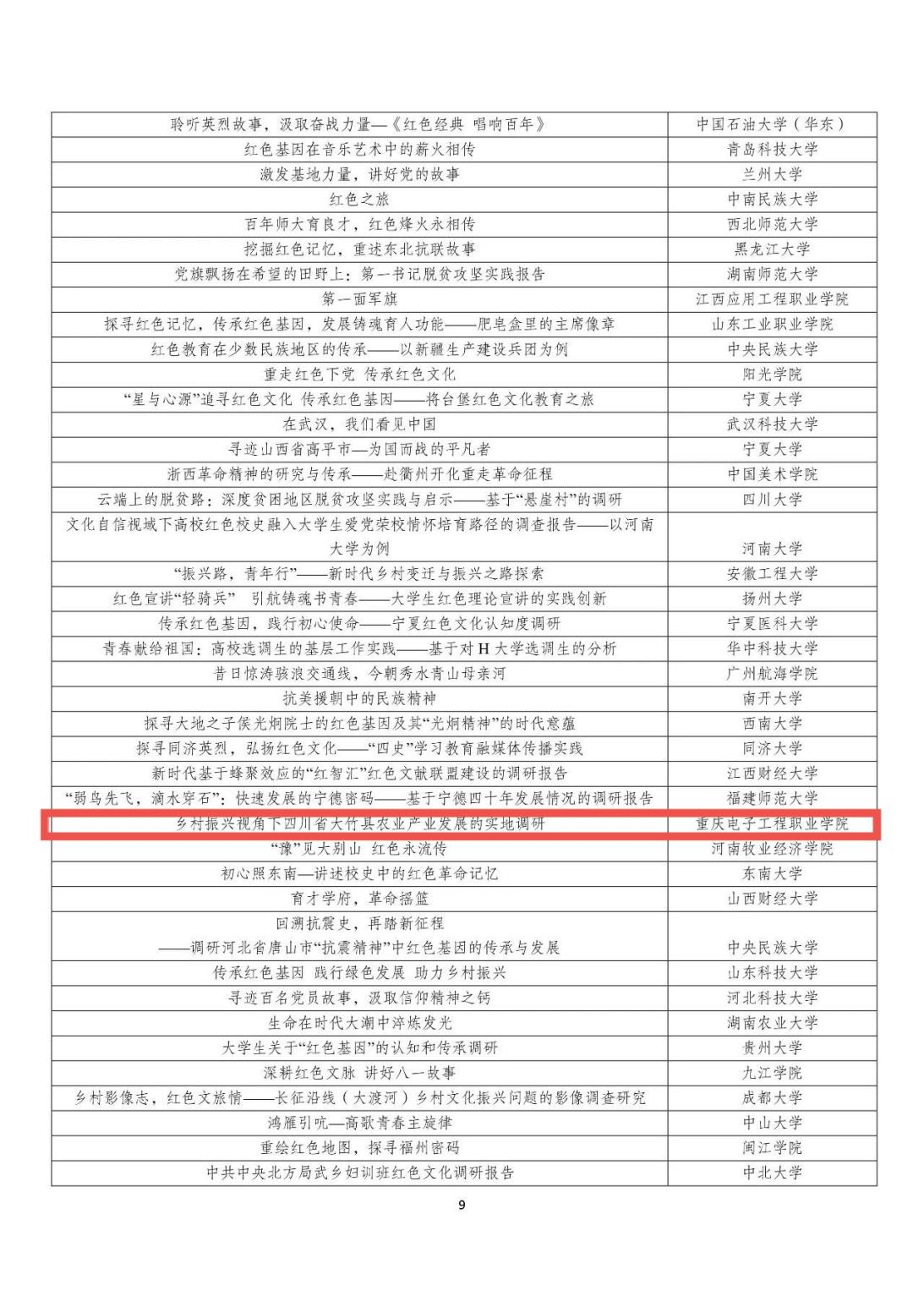 恭喜获奖团队和个人,感谢他们辛苦的努力和付出,为学校带来的荣誉的同时,也希望我院学生在以后的“三下乡”活动中继续发扬重电学子不怕苦、肯受累、爱学习的优良品格,通过社会实践实现真正的知行合一,让青年学子在社会实践中受教育、长才干、做贡献,展现电物学子勇担时代大任的靓丽风采。