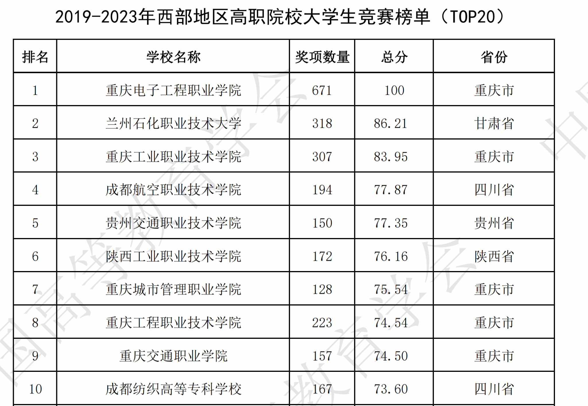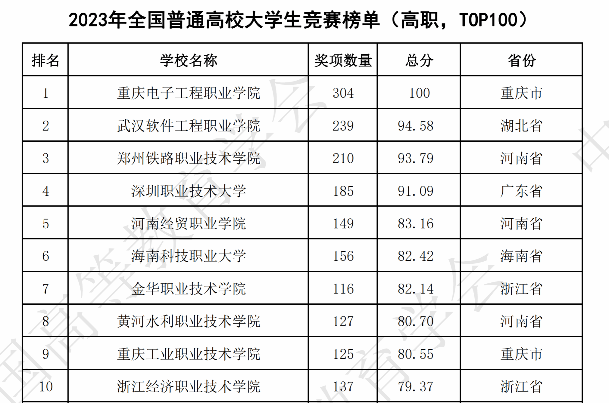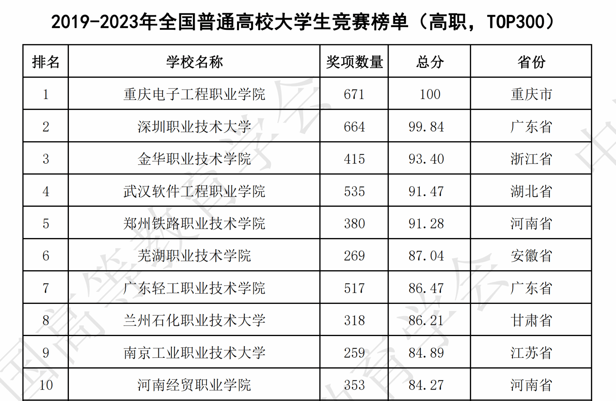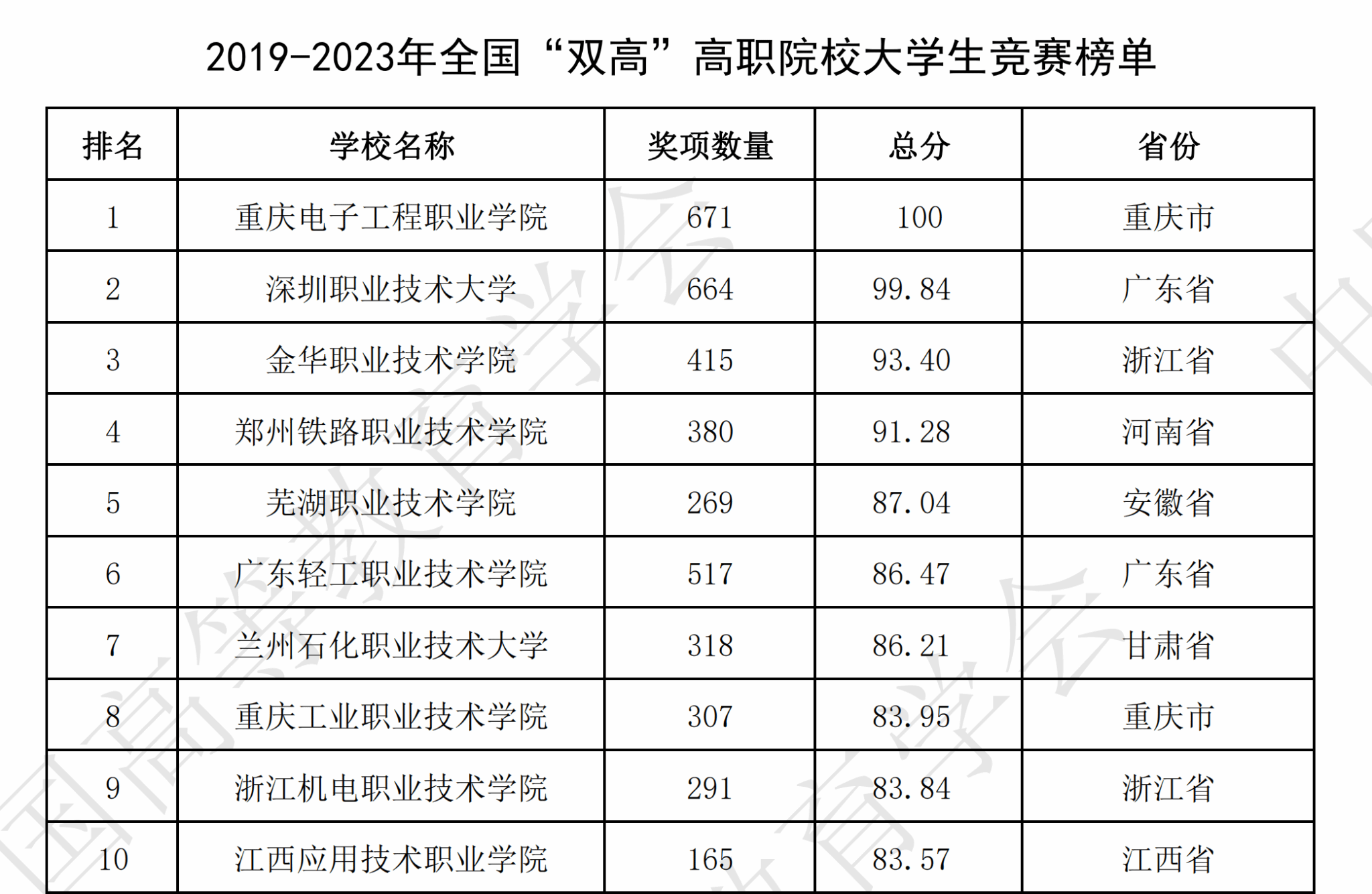 在学校领导支持和全校师生的共同努力下,我校在2023全国普通高校大学生竞赛分析报告高职院校的5个榜单中荣获4个榜单名列第一!这是我校教学建设成效和师生技能竞赛实力的再次充分体现了!也是我校高质量发展的又一突出成果!