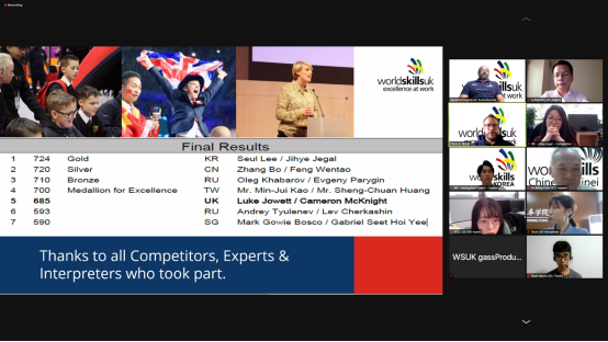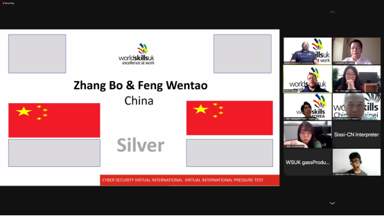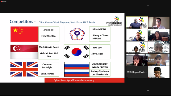 北京时间5月14日晚上19:00,由英国发起的全球网络安全在线挑战赛颁奖典礼在网上举行。参加本次颁奖典礼的嘉宾有英国技能组织代表Chris,世界技能组织网络安全项目中国、英国、新加坡和韩国等7个国家和地区的专家和选手。英国技能组织代表宣读了本次竞赛的获奖成绩,中国队排名第二获得银牌。