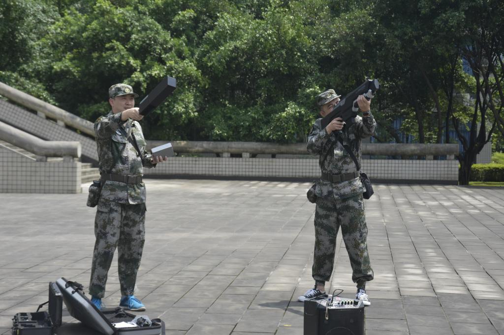 民兵点验大会在嘹亮激昂的《中国人民解放军军歌》中正式开始。重庆电子工程职业学院武装部谯新风部长宣读民兵干部骨干任职命令。随后值班员宣布出队入队的人员名单,并进行点名。全体民兵队员用响亮庄严的声音进行了宣誓。大会上谯新风部长表彰了先进个人和先进班。GPS干扰排及无人机侦察排进行了作战对抗演练。最后谯部长做出工作部署,明确参训对象通过讲述强军兴军内涵实质和时代价值,使大家充分认清新时代民兵建设的精神汲取精神力量,引导广大民兵在学习、工作、生活中自觉培塑、不断积蓄,担当时代使命,不负强军重任大会在振奋有力的《中国民兵之歌》中结束。