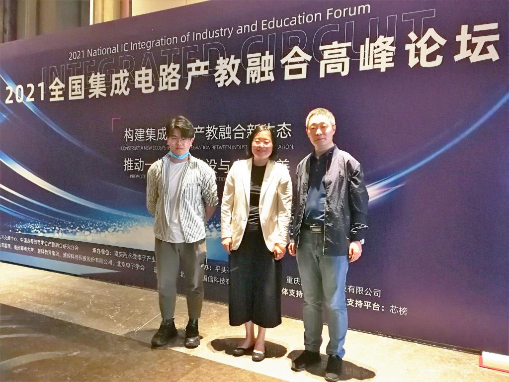 5月15日,工业和信息化部人才交流中心、中国高等教育学会产教融合研究分会在重庆市举办“2021全国集成电路产教融合高峰论坛”。我校微电子技术专业林涛博士、孙毛毛教授作为高职院校代表受邀参加本次论坛。智能电子集成设计工匠工坊、电子+3D打印工匠工坊的刘力同学作为“2021全国大学生集成电路创新创业大赛”备赛选手也随同参会。