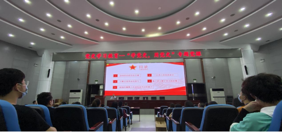 本次主题党日活动主要有理论学习、研讨交流、党史知识竞赛、党委副书记龚小勇同志讲党史学习教育专题党课四个部分。首先,由马克思主义学院思政一党支部汪麟同志、何宜儒同志领学习近平同志《论中国共产党历史》《毛泽东、邓小平、江泽民、胡锦涛关于中国共产党历史论述摘编》,思政二党支部敬官旭同志领学《中国共产党章程》、教务处党支部姜帆同志领学《中国共产党简史》《习近平新时代中国特色社会主义思想学习问答》,理论学习结束后,党员同志分享交流学习心得,思政一支部的党员张倩同志谈到当代青年为什么要学习党史?“学史明理、学史增信、学史崇德、学史力行”这16个字,就是我们学习党史的意义。百年党史,学好党史才能更好地读懂中国共产党,更好地读懂新中国。这一百年的历史文化底蕴,就是我们的文化自信。教务处党支部谢蓉同志谈到作为新时代的思政教育工作者,学习好党史,向全世界传递好中国声音,讲好中国故事,是我们义不容辞的责任。今天的中国,屹立于世界的东方,百年党史,就是我们的底气。我们可以很自豪地告诉全世界,正因为有中国共产党,才有今日繁荣富强的中国。思政二支部符必春同志谈到重温“狱中八条”,仿佛就是针对今天的现实而写的,白色恐怖时期,考验革命者的是生死关、毒刑拷打关、威逼利诱关,和平年代、市场经济时期,考验共产党员的是名利关、权力关、情色关。今天,我们同样要面对各种诱惑和考验,稍有不慎,同样有失身予腐败的可能。