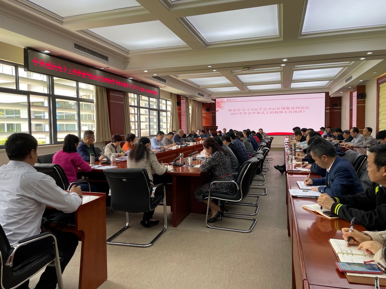 会上集中学习了《习近平总书记在博鳌亚洲论坛2021年年会开幕式上的视频主旨演讲》《习近平总书记在“领导人气候峰会”上的讲话》《中国共产党普通高等学校基层组织工作条例》,学习了孙春兰在安徽调研时强调加快构建现代职业教育体系的讲话。